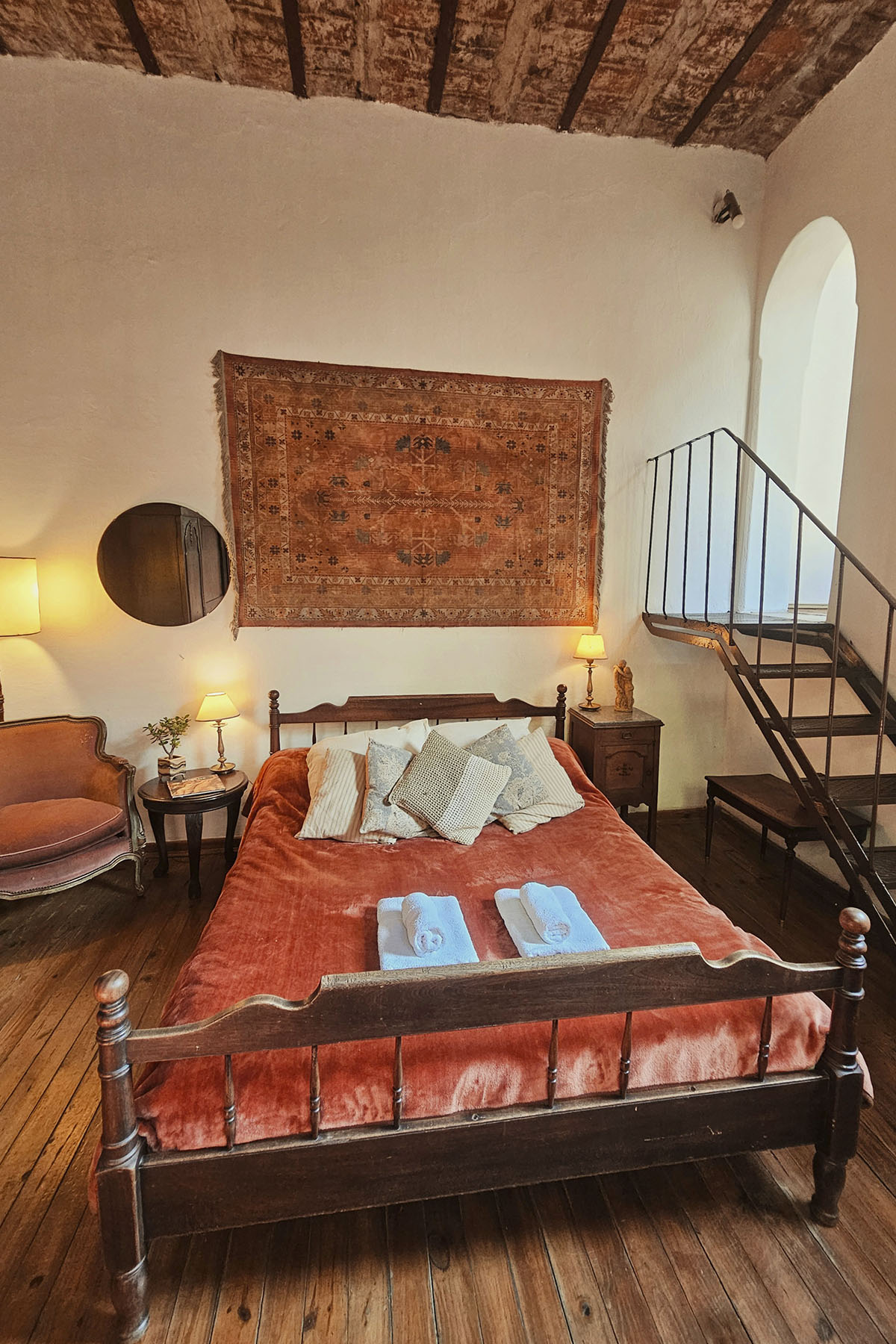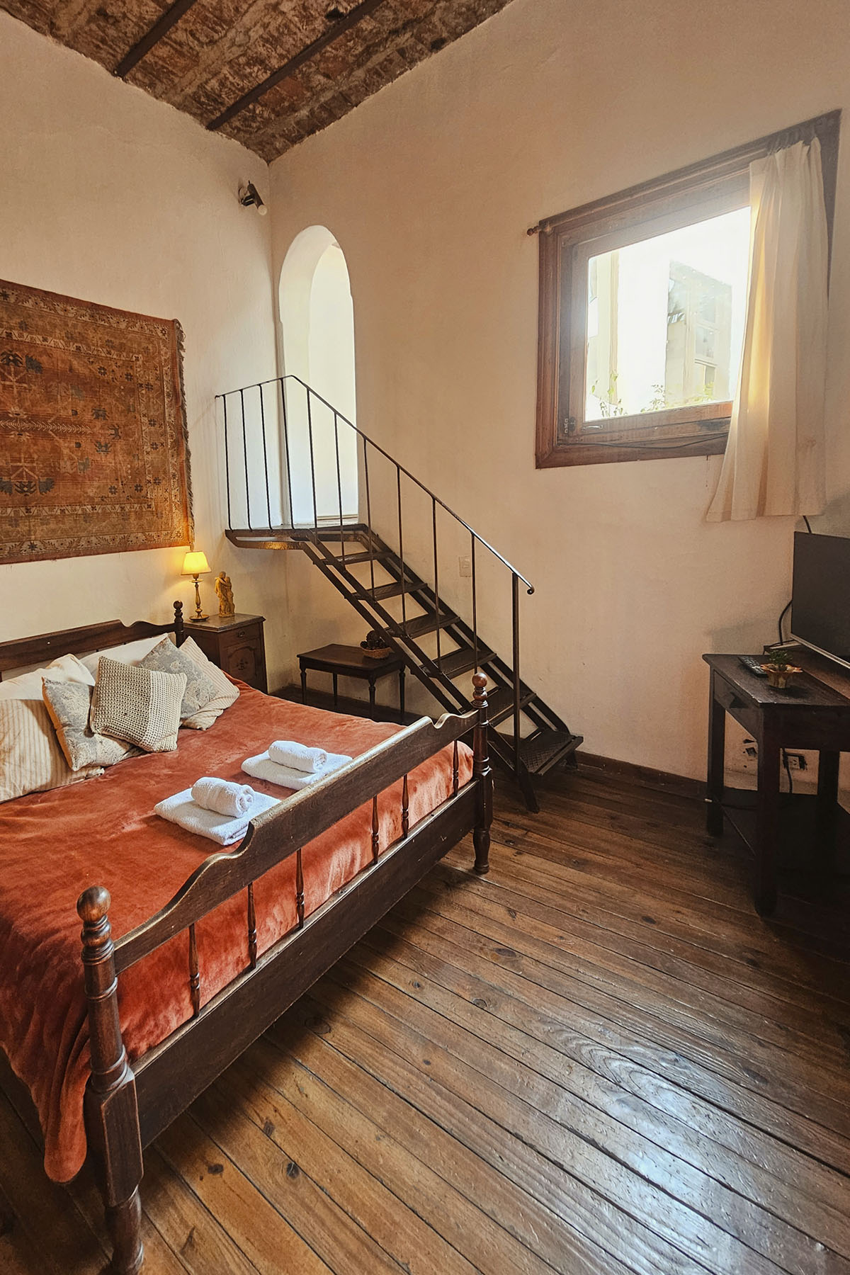 Departamento colonial en dos niveles, con detalles artísticos y una terraza privada única. Muy silencioso, ya que se encuentra en el corazón de la manzana, lejos del ruido urbano.