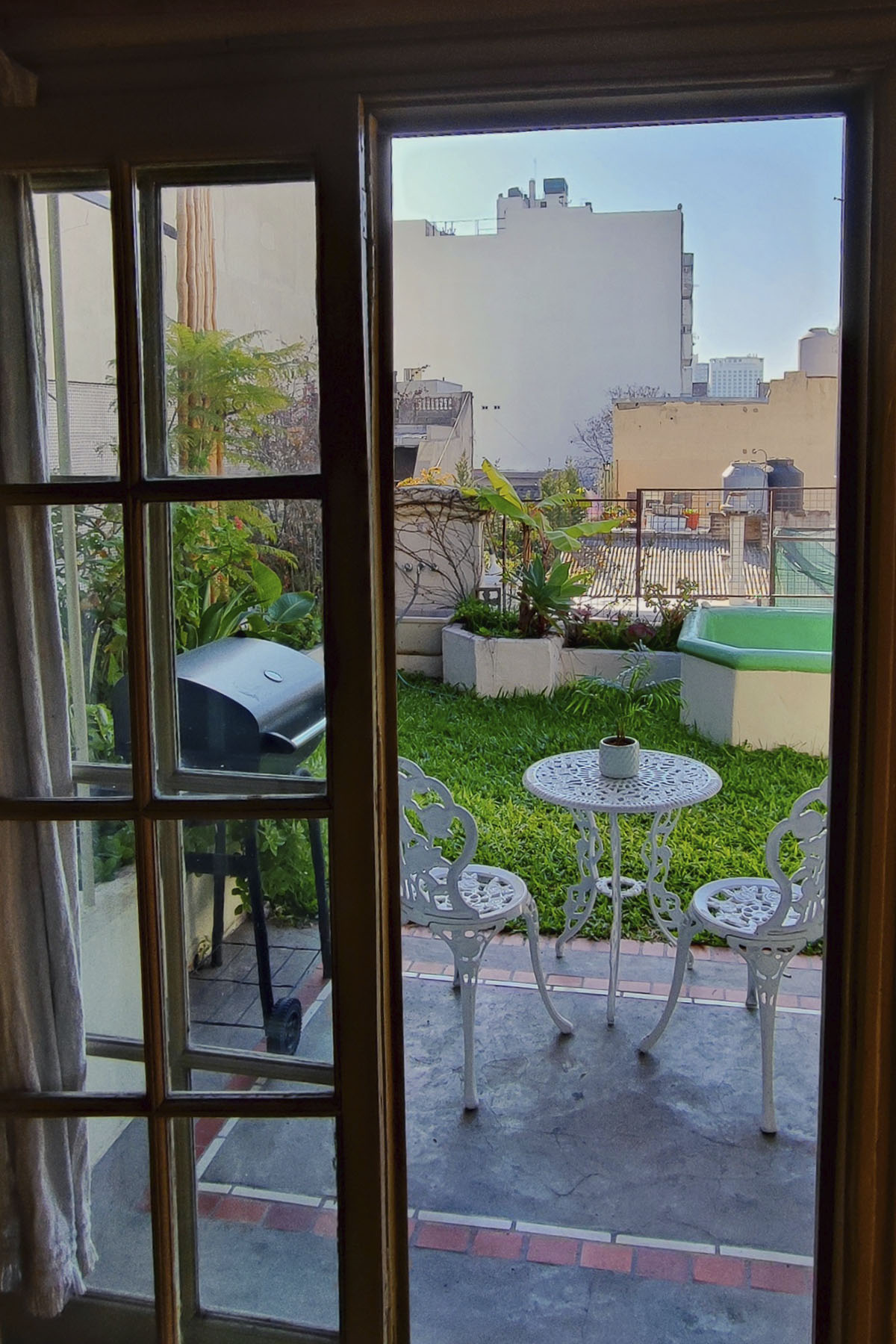 Departamento con jardín privado, pasto natural y parrilla. Un refugio verde poco habitual en la ciudad.
