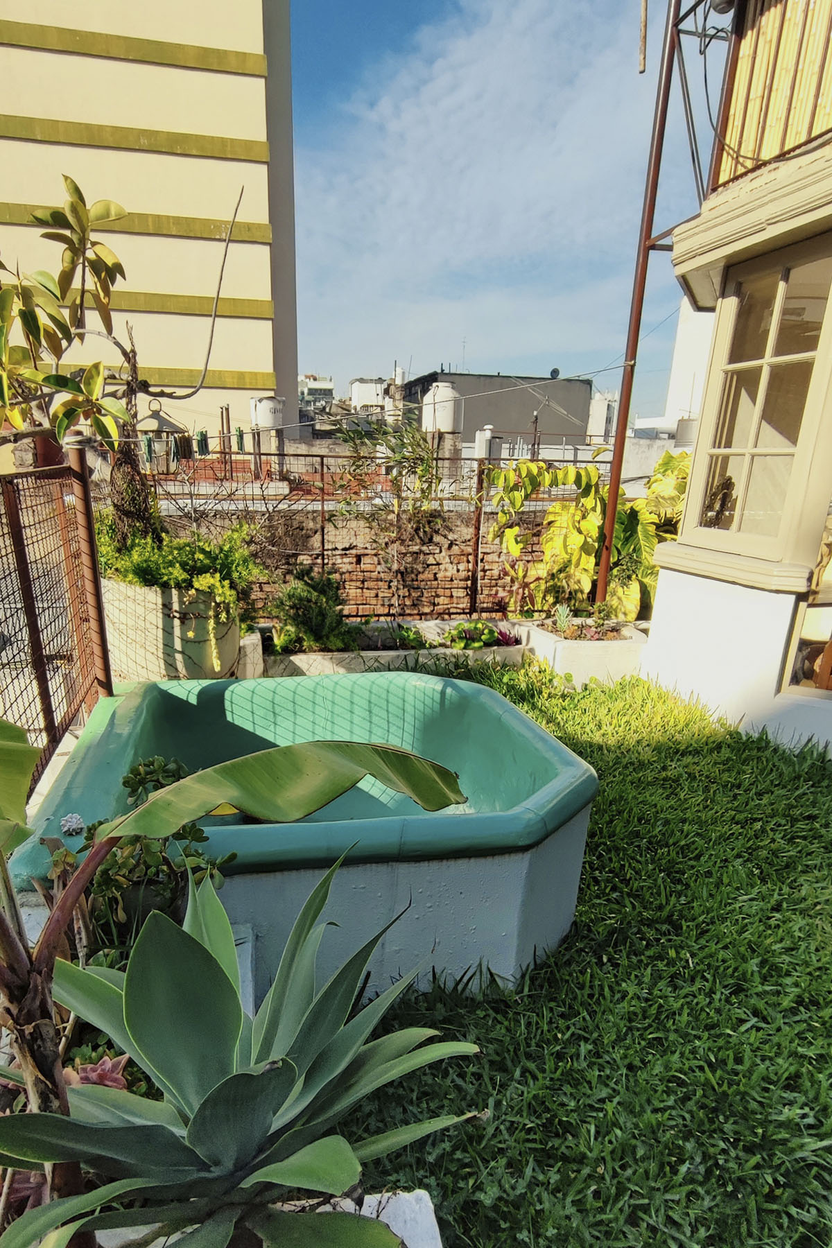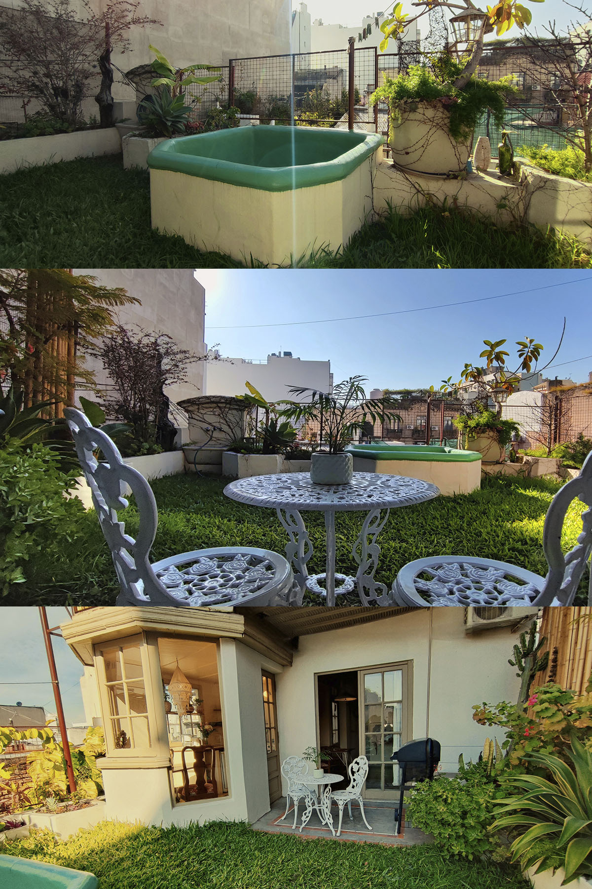 • Jardín privado de 25 m² con galería semicubierta, parrilla y pequeña pileta con agua fría y caliente.