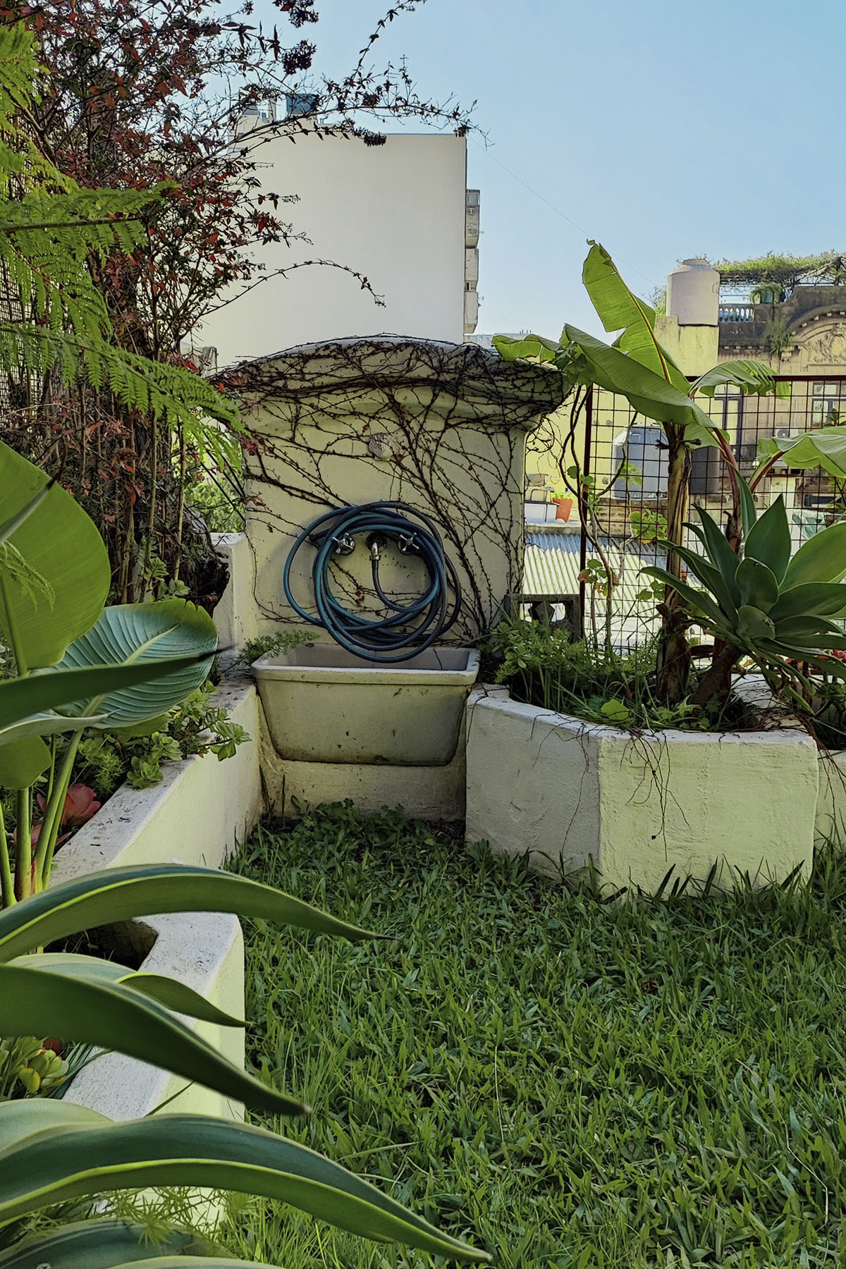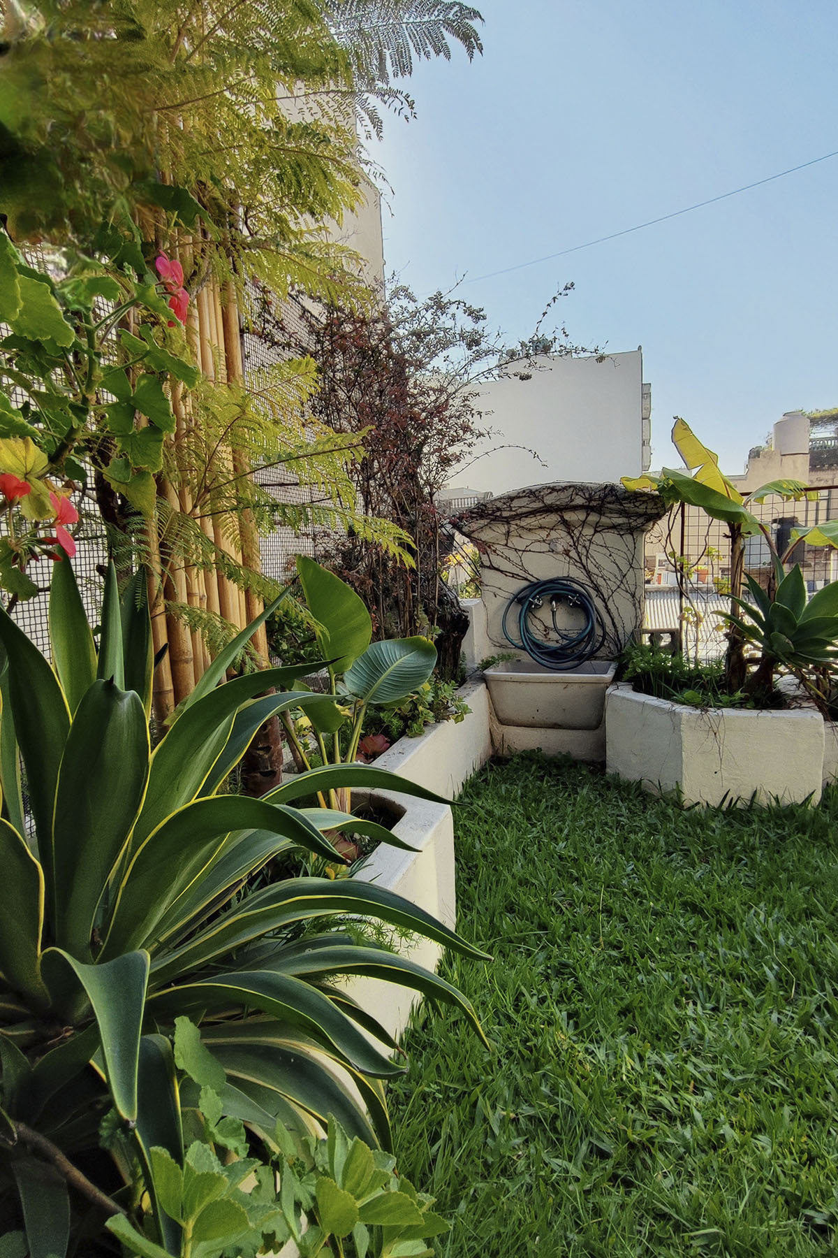 Departamento con jardín privado, pasto natural y un entorno verde poco habitual en la ciudad.