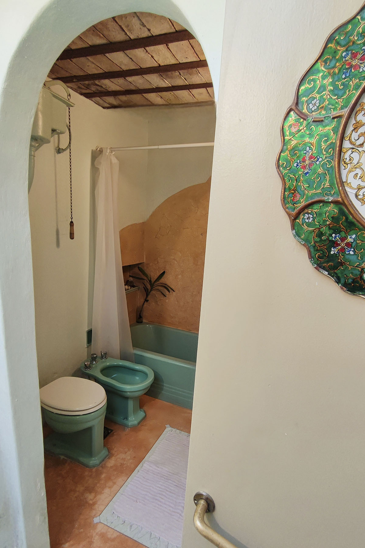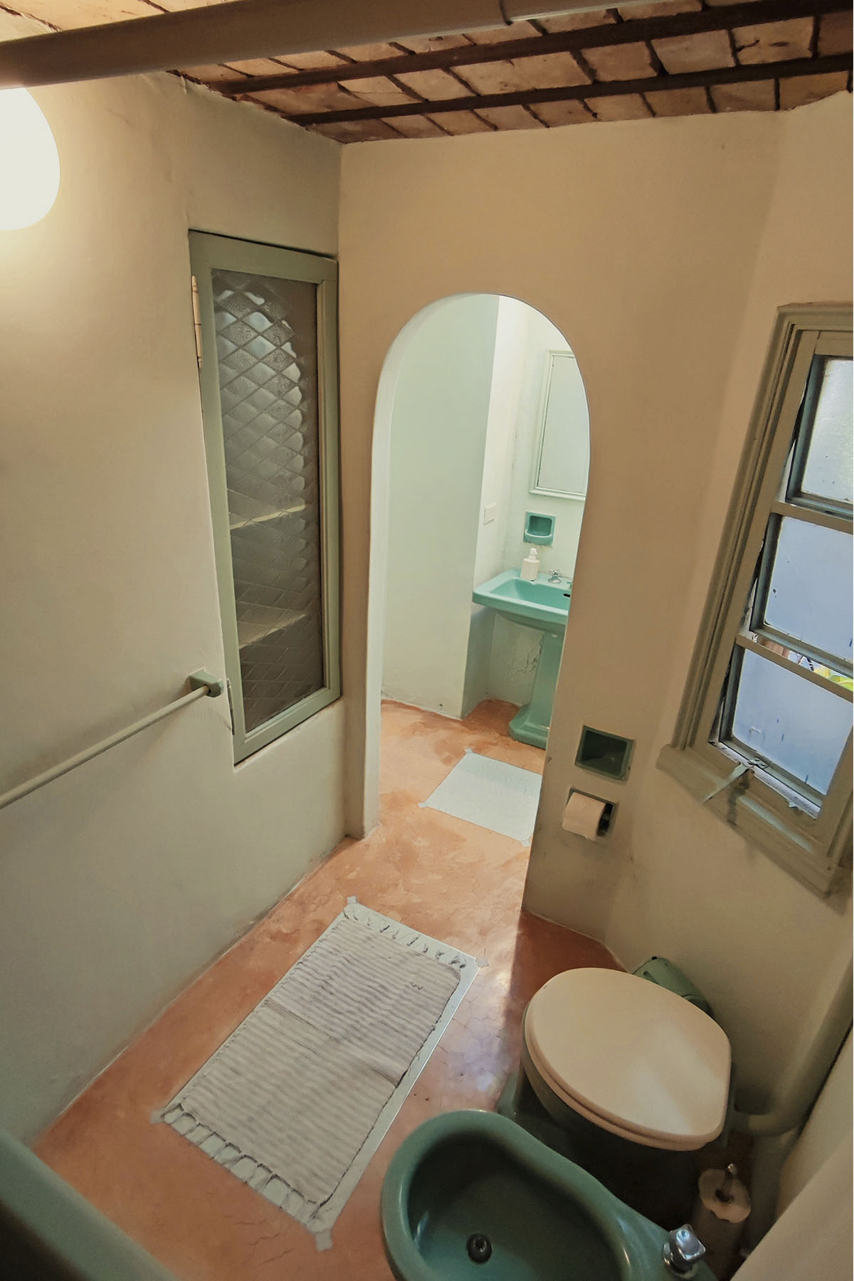 •  Baño con sanitarios antiguos, antebaño y bañera grande.