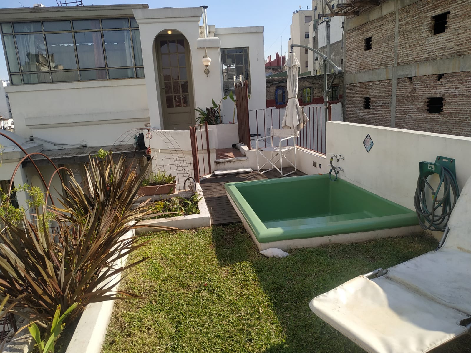 Lugar único, original y encantador! Con jardín de pasto natural en altura y pileta. Tiene aire acondicionado frio/calor grande (4500) y la mejor orientación al Norte que le da mucha luminosidad. El baño tiene bañera con techo de vidrio. El agua caliente es ilimitada a toda hora. Tiene un piso de madera reciclada de Pino-Tea y una pantalla de 32 pulgadas. Ideal para quien quiera pasar una estadía con privacidad en un lugar inolvidable!